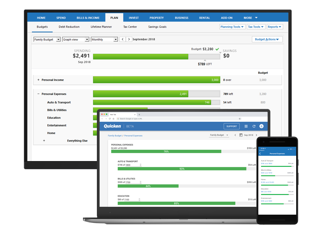 See your complete budget anytime on Quicken Mobile or Quicken on the Web*
