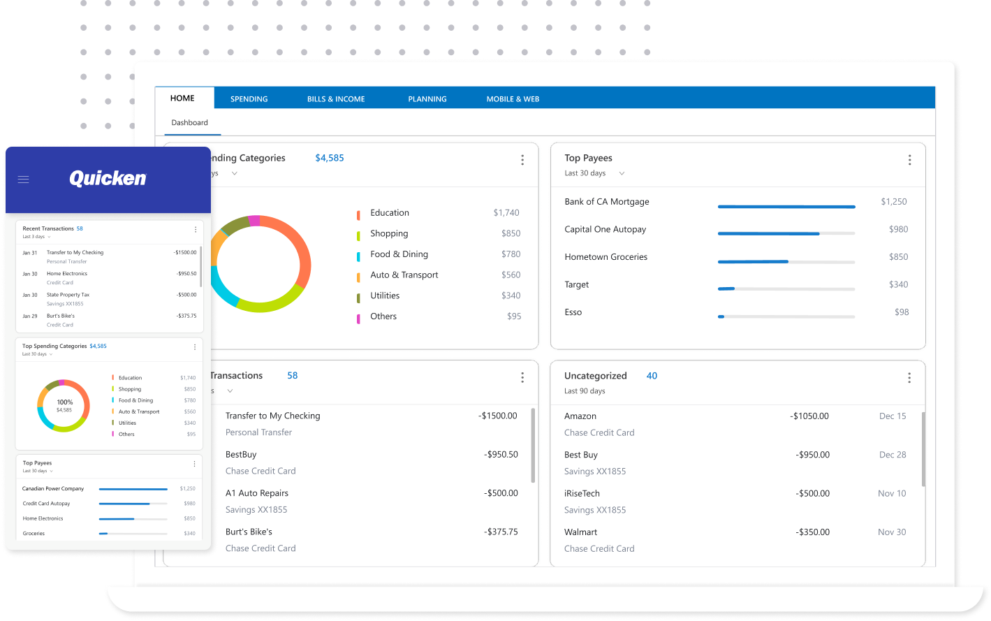 Sync with the Quicken web & mobile apps to manage your money on the go.