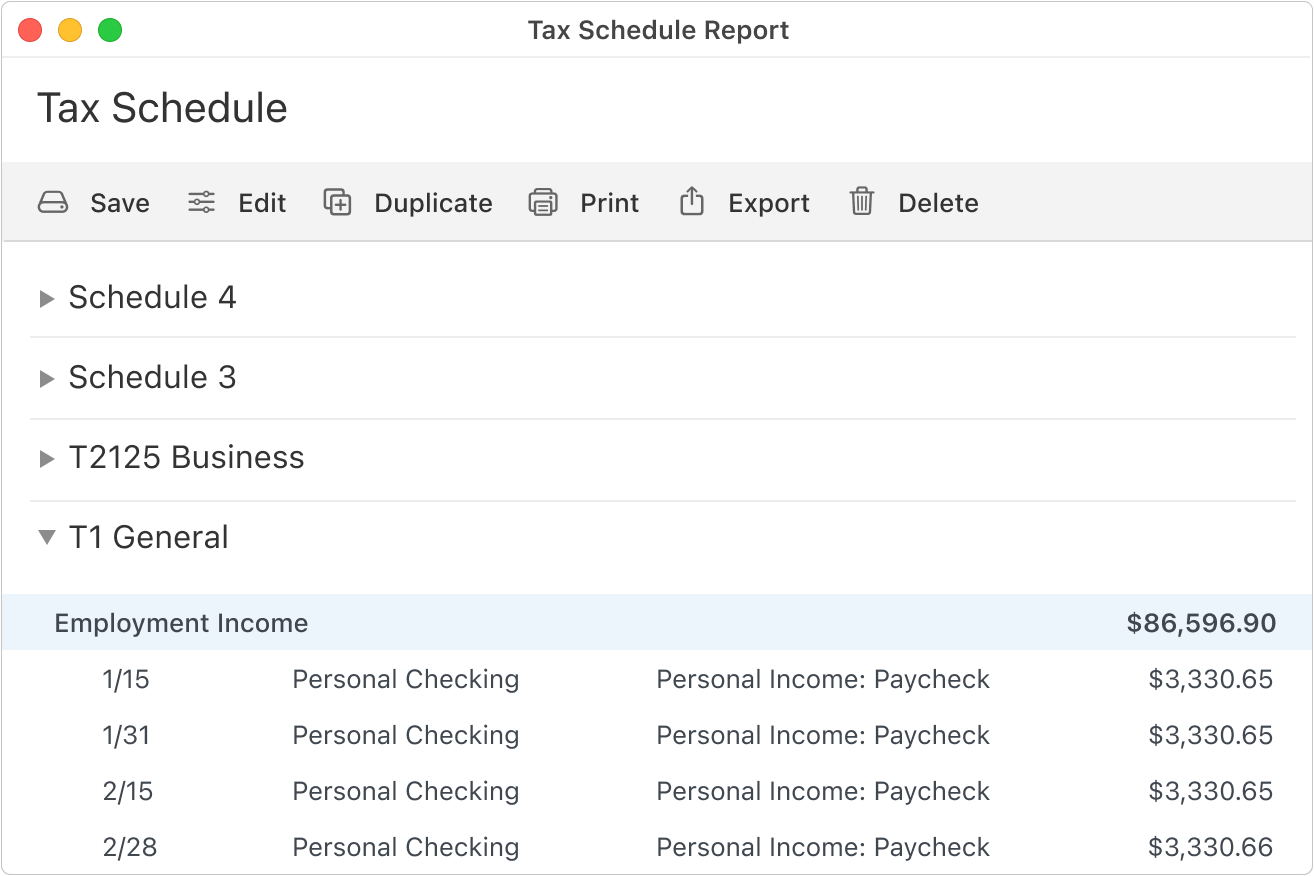 Track tax-related spending and income. Generate Schedule 3 (capital gains) reports or any customized tax reports you need. Export your financial data to TurboTax and make taxes easy.