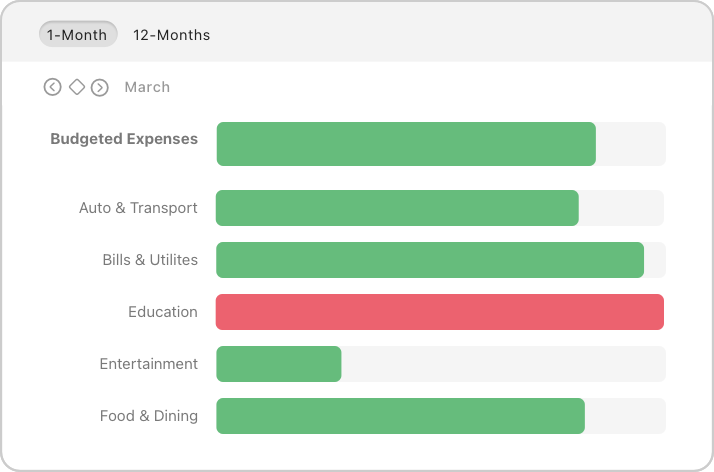 Let Quicken create a fully customizable 12-month budget based on your actual income and expenses, including the ability to set different values each month, rollover budgeting & more.