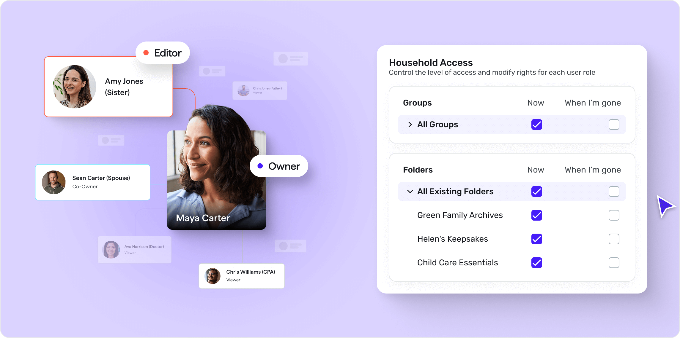 When you add people to LifeHub, you can choose their role to control the access they have to information. You choose what to share with them.