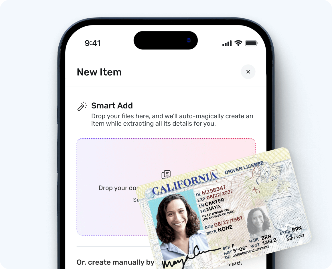 Open the mobile app, snap your driver's license and other IDs. LifeHub’s Smart Add tool captures the info.