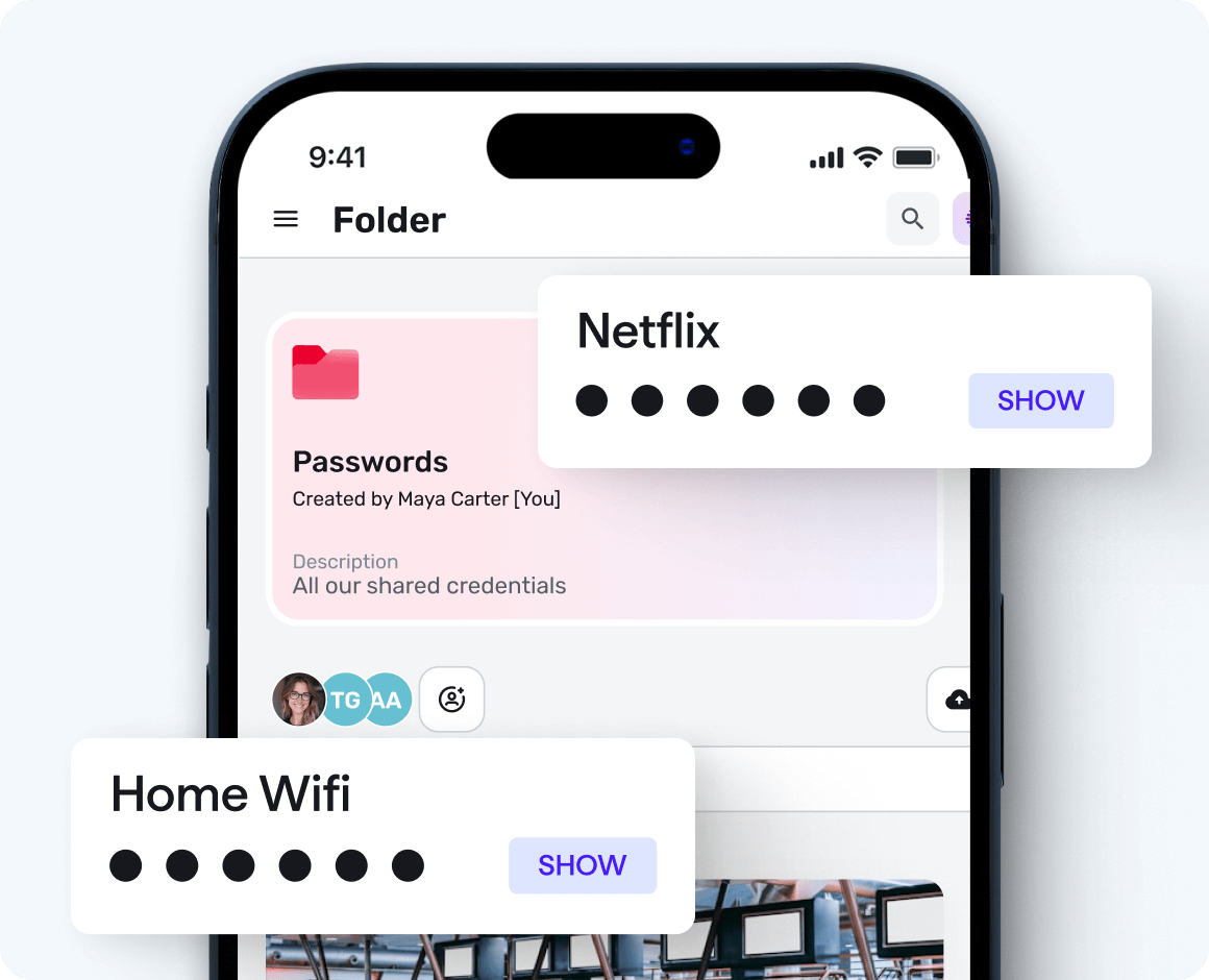 Organize with folders: Group items in folders for easy access & sharing, like adding your house, insurance, mortgage, and access codes to a “My house” folder.