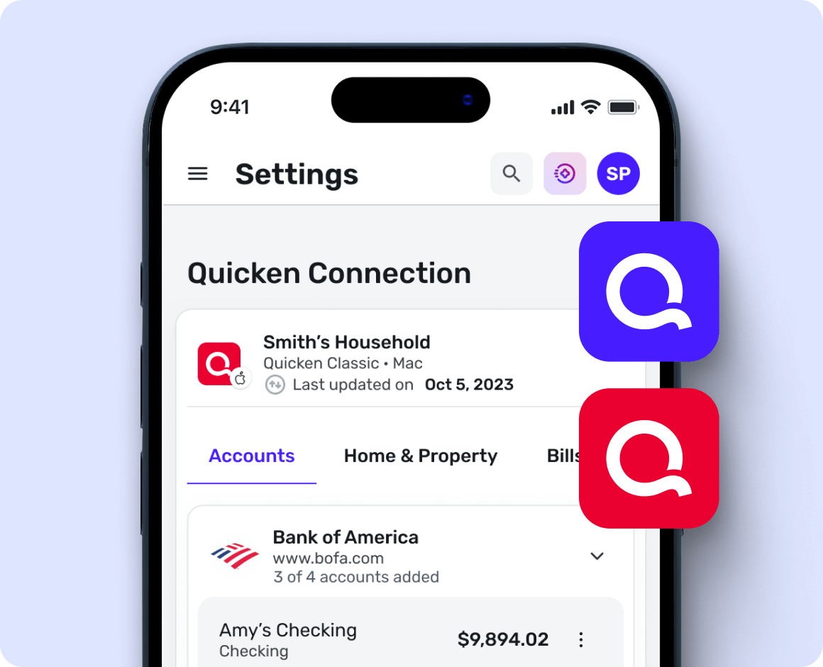 Connect to Quicken: You can easily add Accounts, Properties, Bills, and Income from your Quicken files. You select which ones you want to include in Quicken LifeHub, and we automatically keep those items up to date as they change.