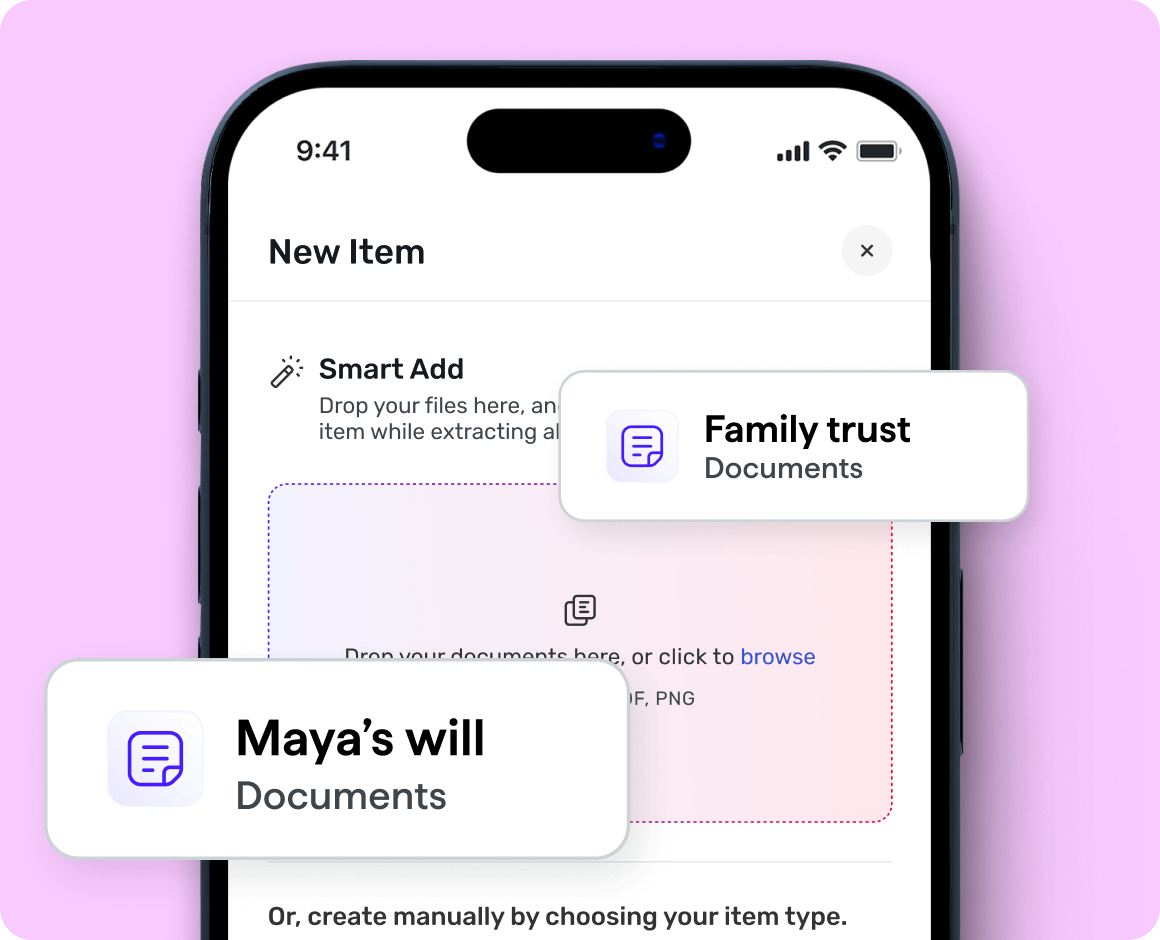 Add more of the info your family needs — like legal docs, financial data, and medical records. The more you add, the more valuable LifeHub becomes.