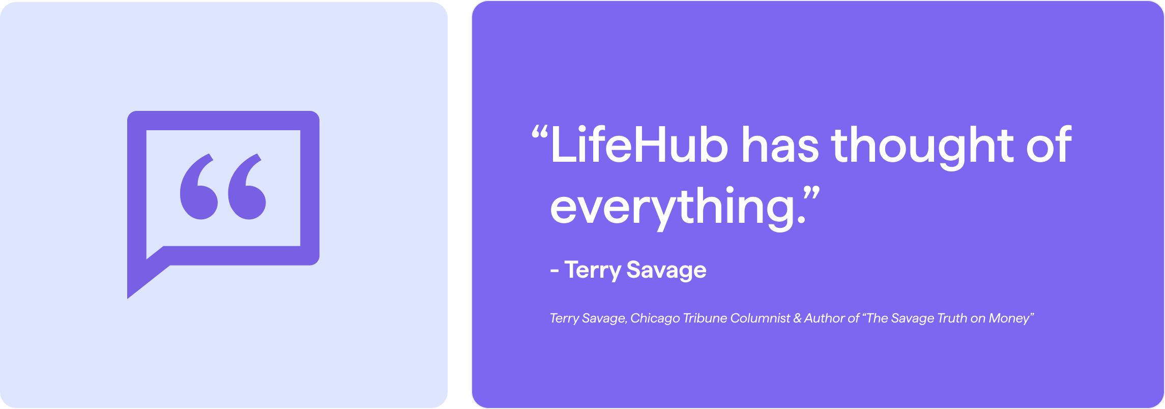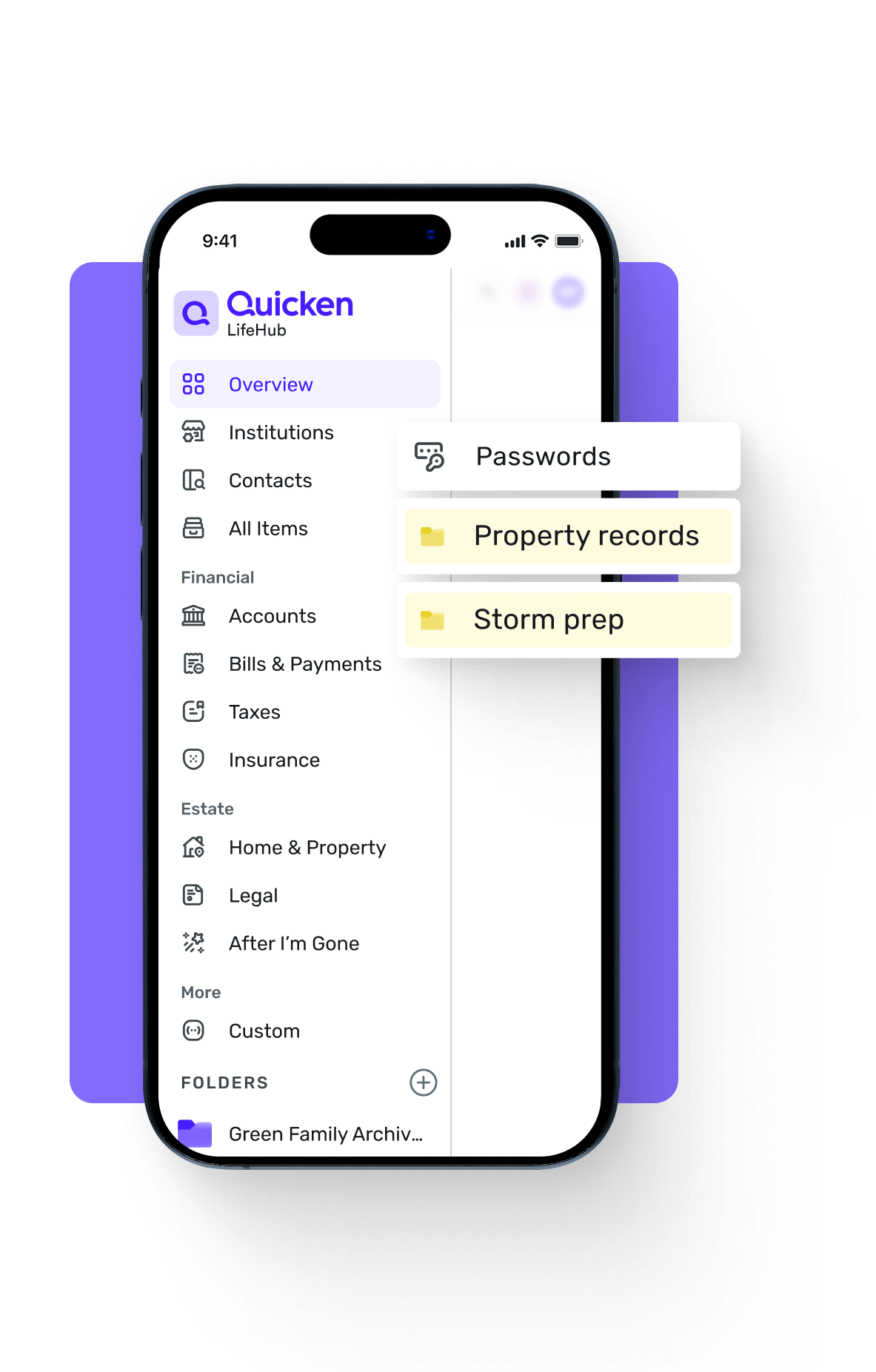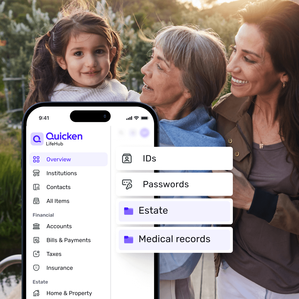 Quicken LifeHub is far more than a storage system. It was built from the ground up to guide you in organizing your essential information, making sure you and your loved ones are prepared for life’s events.