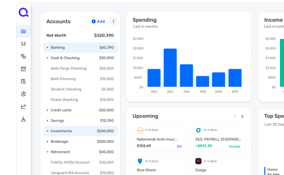 Leverage built-in tools and calculators as your finances evolve. Dashboards and reports let you easily view a lifetime of data in one place.